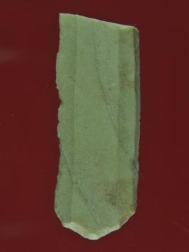 | Description / विवरण | It s a chert blade in rectangular shape. Little bit thick in the middle and edges are sharp. Surface is smooth and appearance is off white. |