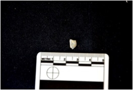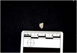 | Description / विवरण | Fragment of a blade made on chalcedony, use wear marks on one edge, broken at both ends |