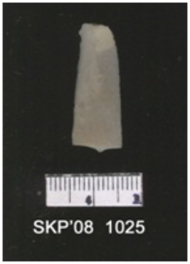 | Description / विवरण | Broken chert blade. The ridge can be seen clearly. It is rectangular in structure and triangular in cross section. The retouch can be seen. |