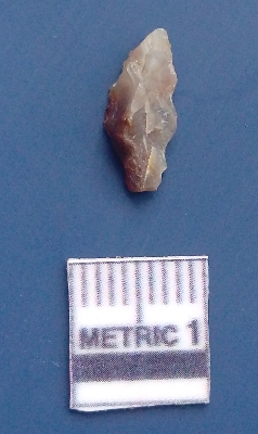 | Description / विवरण | It is a blade fragment. The lateral sides are sharp. The ridges are clearly seen on the dorsal surface while the ventral surface is plain. |