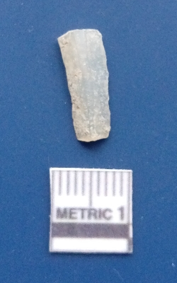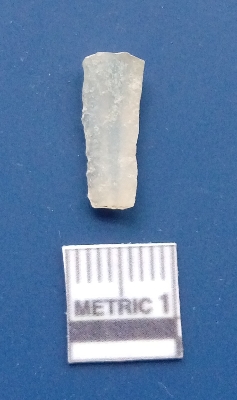 | Description / विवरण | It is a blade fragment. The lateral sides are sharp. The ridges are clearly seen on the dorsal surface while the ventral surface is plain. |
