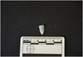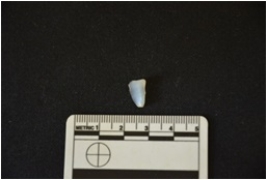 | Description / विवरण | Fragment of a blade made on chalcedony, broken at the distal end, bulb of percussion seen, use wear marks on both edges |