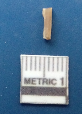 | Description / विवरण | It is a blade fragment. The lateral sides are sharp. The ridges are clearly seen on the dorsal surface while the ventral surface is plain. |