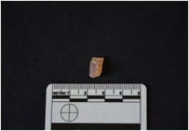 | Description / विवरण | Flake struck on chalceony, use wear marks seen on both eges, cortex present on dorsal side |