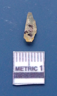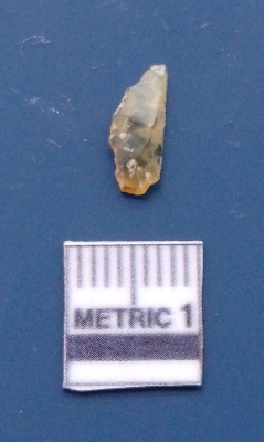 | Description / विवरण | It is a blade fragment. The lateral sides are sharp. The ridges are clearly seen on the dorsal surface while the ventral surface is plain. |
