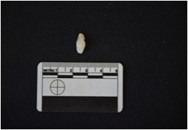 | Description / विवरण | Blade made on chalcedony, use wear marks on both eges, broken at the distal end |