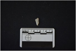 | Description / विवरण | Fragment of a blade made on chalcedony, broken at both ends, use wear marks seen |