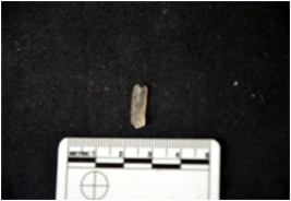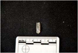 | Description / विवरण | Blade made on chalcedony, use wear marks seen on both edges, broken at the distal end |