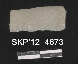 | Description / विवरण | This is chert blade, broken ends with trapezium cross section. Uneven rough side margins. Flaked ridges. |