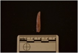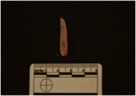 | Description / विवरण | Moss Agate blade has a ridge on dorsal side, striking platform, bulb on ventral side and use-wear marks on edges. |