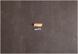 | Description / विवरण | The chert blade has parallel sides with use-wear pattern. The blade is triangular in cross section owing to the median ridge due to flaking. |