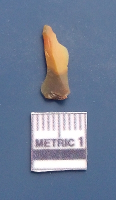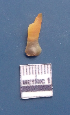 | Description / विवरण | It is a blade fragment. The lateral sides are sharp. The ridges are clearly seen on the dorsal surface while the ventral surface is plain. |