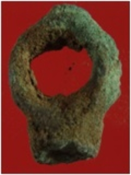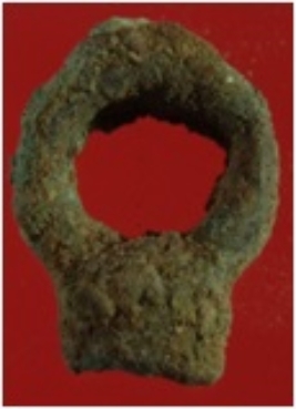 | Description / विवरण | Trench XAV 19, Qdt 2, layer 1, depth 40 cm It is a broken loop of some bell made of copper. Shape is circular but pointed in the middle and surface is rough and corroded. |