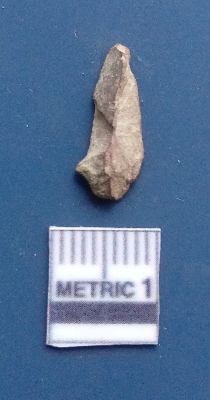 | Description / विवरण | It is a blade fragment. The lateral sides are sharp. The ridges are clearly seen on the dorsal surface while the ventral surface is plain. |