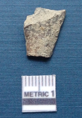| Description / विवरण | It is a blade fragment. The lateral sides are sharp. The ridges are clearly seen on the dorsal surface while the ventral surface is plain. |
