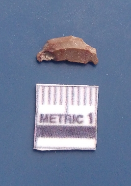 | Description / विवरण | It is a blade fragment. The lateral sides are sharp. The ridges are clearly seen on the dorsal surface while the ventral surface is plain. |