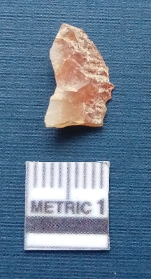 | Description / विवरण | It is a blade fragment. The lateral sides are sharp. The ridges are clearly seen on the dorsal surface while the ventral surface is plain. |