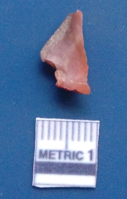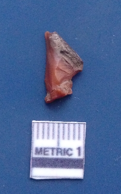 | Description / विवरण | It is a blade fragment. The lateral sides are sharp. The ridges are clearly seen on the dorsal surface while the ventral surface is plain. |