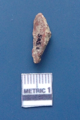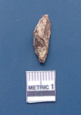 | Description / विवरण | It is a blade fragment. The lateral sides are sharp. The ridges are clearly seen on the dorsal surface while the ventral surface is plain. |