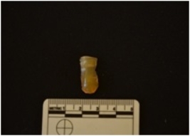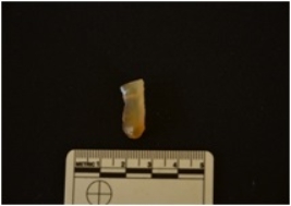 | Description / विवरण | Chalcedony blade fragment has crested ridge on dorsal side, striking platform,bulb with errailure on proximal end, broken from distal end, use-wear marks on edges and heated. |