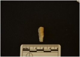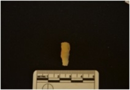 | Description / विवरण | Chalcedony blade fragment has a crested ridge on dorsal side,broken from both ends,use-wear marks on edges and heated. |