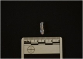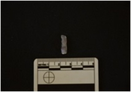 | Description / विवरण | Chalcedony blade has two ridges on dorsal side, striking platform, bulb on ventral side and use-wear marks on edges. |