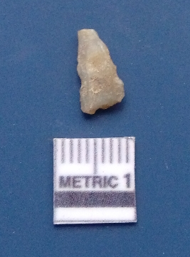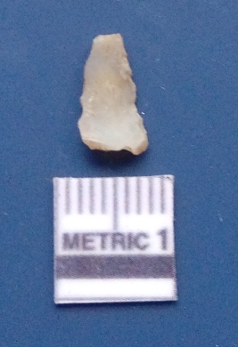| Description / विवरण | It is a retouched blade fragment. The lateral sides are sharp. The ridges are clearly seen on the dorsal surface while the ventral surface is plain. |