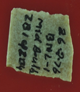 | Description / विवरण | Trench Mid baulk, ZB 1& ZB 4 It s a small piece of chert blade in rectangular shape. Little bit thick in the middle and edges are rough. Surface is smooth and appearance is off white. |