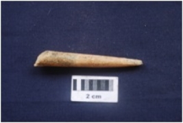 | Description / विवरण | Bone point broken into two pieces. The broader end is broken. Circular section. |