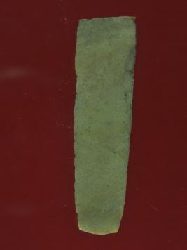 | Description / विवरण | It s a chert blade in rectangular shape but one end is broder than other. Little bit thick in the middle and edges are sharp. Surface is smooth and appearance is off white. |