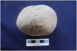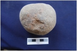 | Description / विवरण | Hammer stone, made on granite. Roughly circular in shape. Abbraded along the circumference, surface polished. |