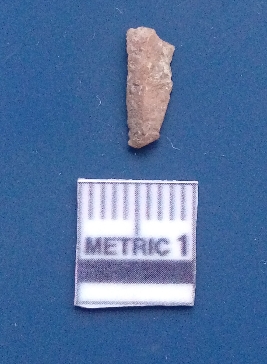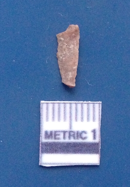 | Description / विवरण | It is a blade fragment. The lateral sides are sharp. The ridges are clearly seen on the dorsal surface while the ventral surface is plain. |
