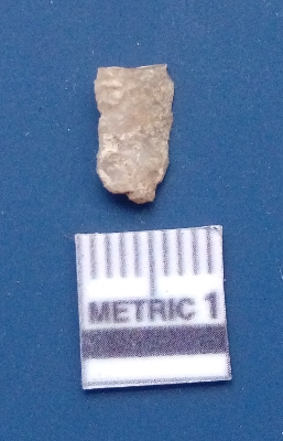 | Description / विवरण | It is a blade fragment. The lateral sides are sharp. The ridges are clearly seen on the dorsal surface while the ventral surface is plain. |