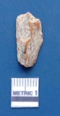 | Description / विवरण | It is a blade fragment. The lateral sides are sharp. The ridges are clearly seen on the dorsal surface while the ventral surface is plain. |