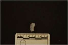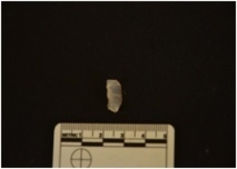 | Description / विवरण | Chalcedony blade fragment has ridge, on dorsal side, striking platform, broken from distal end and use-wear marks on edges. |