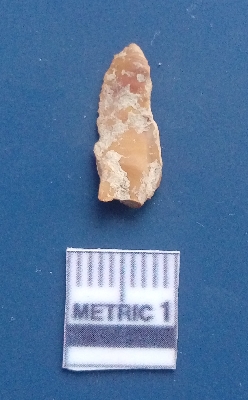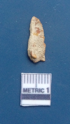 | Description / विवरण | It is a blade fragment with sharp edges with lateral margins and prominent flake scars on the surface. |