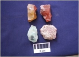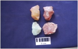 | Description / विवरण | Four Scrapers, one is made on side-struck chert flake with use-wear marks whereas three scrapers were made on end-struck chert flakes, partly retouched along the lateral edges. |