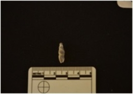 | Description / विवरण | Chalcedony blade has a crested ridge on dorsal side, striking platform, bulb on ventral side and use-wear marks on edges. |