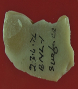 | Description / विवरण | Trench Surface It s a chert blade in uneven shape. Little bit thick in the middle and edges are rough. Surface is smooth and appearance is off white. |