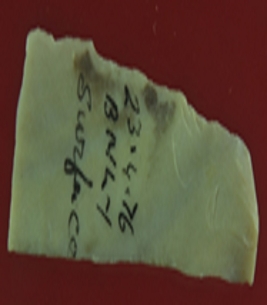 | Description / विवरण | Trench Surface It is a broken chert blade. Edges are rough. Surface is smooth with little thickness in the middle. Appearance is creamish. |