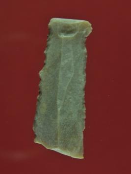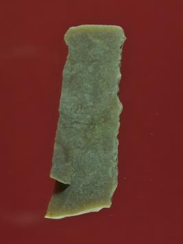 | Description / विवरण | It s a chert blade in rectangular shape. Little bit thick in the middle and edges are rough. Surface is smooth and appearance is off white. |