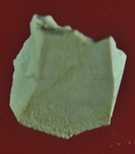 | Description / विवरण | It is a small piece of chert blade. Surface is uneven and thickness in the middle, appearance is off white. |
