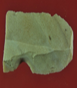 | Description / विवरण | It s a chert blade in rectangular shape but one side is broder than other. Little bit thick in the middle and edges are rough. Surface is smooth and appearance is off white. |