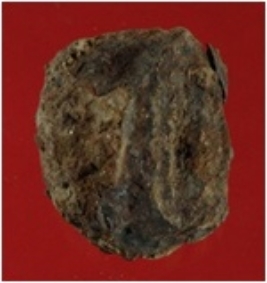 | Description / विवरण | Trench XAT 19, Qdt 1, layer 5, depth 250 cm It is a half broken ball made of iron. Shape is hemispherical and surface is coarse and corroded. It might have been used as a weight. |