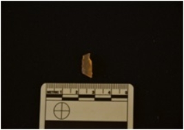 | Description / विवरण | Chalcedony blade fragment has two ridges on dorsal side, use-wear marks on edges and heated. |
