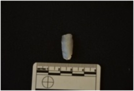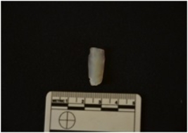| Description / विवरण | Chalcodeny blade fragment has a midridge on dorsal side,striking,platform,bulb on ventral side,broken from distal end and use-wear marks o edges. |