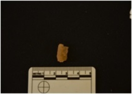 | Description / विवरण | Chalcedony blade fragment has a crested ridge on dorsal side, striking platform, bulb on ventral side, broken from distal end and use-wear marks on edges. |