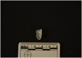 | Description / विवरण | Chalcodeny blade fragment has a crested ridge on dorsal side,striking platform,bulb on ventral side,broken from distal end and use-wear marks on edges. |
