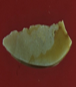 | Description / विवरण | It is a small chert blade, little curved with rough edges. One end is pointed and other is broken and thick. Surface is smooth. |