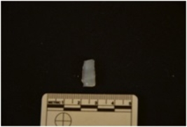 | Description / विवरण | Chalcedony blade fragment has two ridges on dorsal side, broken from both ends, use-wear marks and retouches on edges. |
